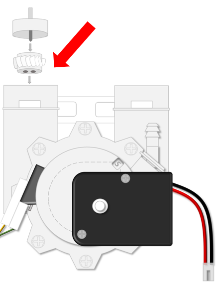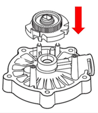 7. Reattach the cam/gear by lining up the cutout in the cam with the shape on the gray rotor stem.