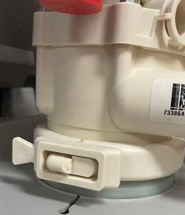 2. You’ll push the valve head straight back down onto the riser tube and reconnect the white/tan clamps and clips around the tank neck.